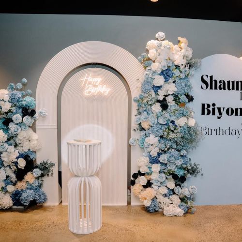 ✅ Dual Arches – One plain and one ripple arch for a dynamic backdrop.