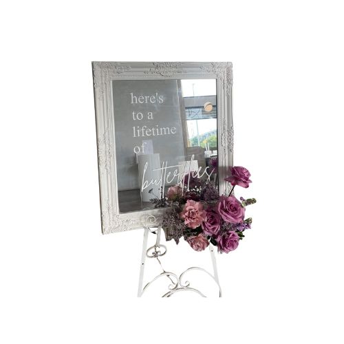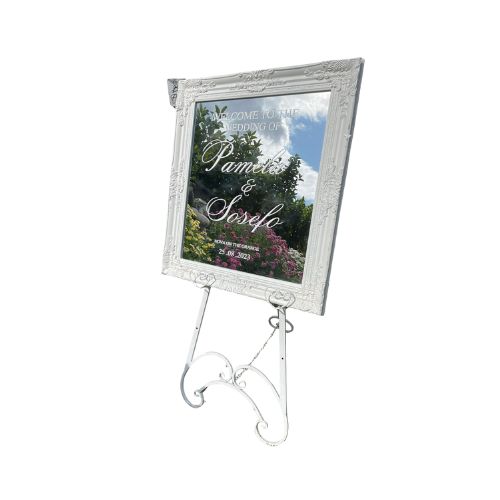 Make a lasting first impression with our Mirror Welcome Sign – a stunning addition to elevate the entryway of your event. With its sleek, reflective surface and elegant design, this sign is perfect for welcoming guests with style and sophistication. Whether you’re hosting a wedding, birthday party, engagement, or corporate event, our mirror sign adds a touch of class that complements any theme or decor.